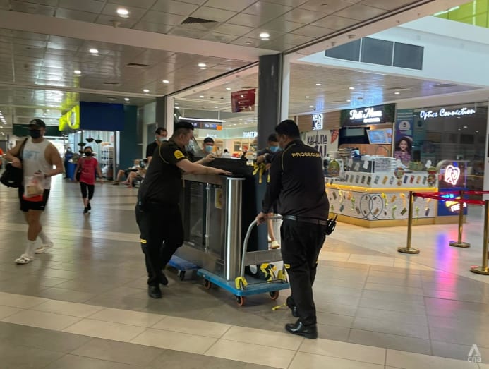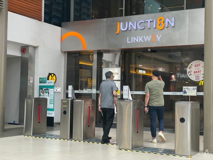 SafeEntry check-in stations have been removed from Junction 8 mall in Bishan. (Photo: CNA/Cheryl Lin)