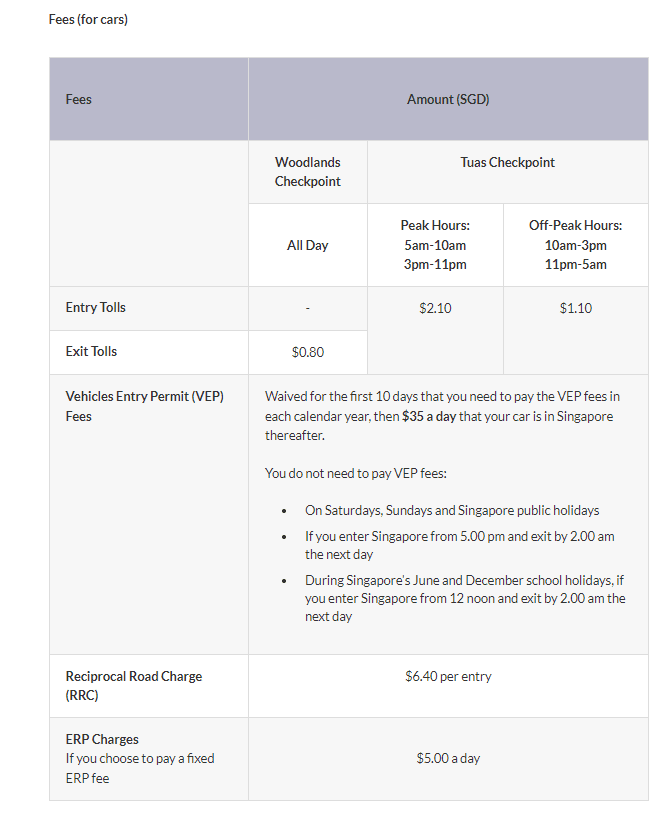 Malaysia’s Road Charge is a levy imposed on all non-Malaysian-registered cars entering Malaysia on road via Johor.