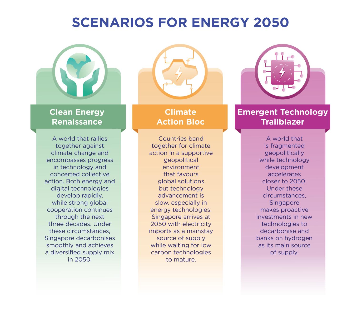 It therefore adopted a “scenario-based approach” where it came up with three plausible scenarios of what a decarbonised Singapore power sector may look like in 2050.