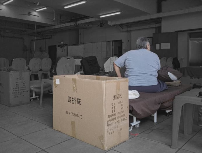 File photo of a person in a temporary homeless shelter in April 2020 during the circuit breaker period. (Photo: CNA/Vanessa Lim, Jonathan Yeo)