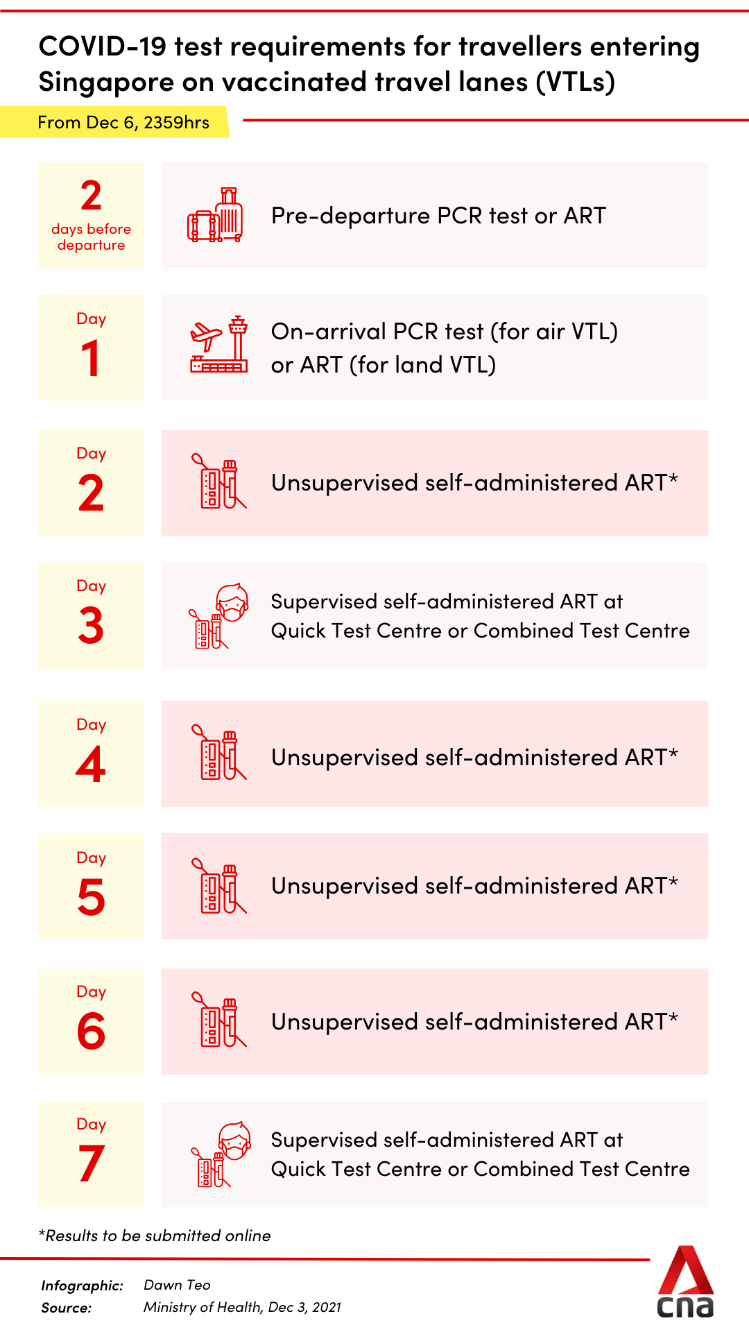 The new testing requirement will take effect on Dec 6, 11.59pm, the Ministry of Health (MOH) announced on Friday (Dec 3).