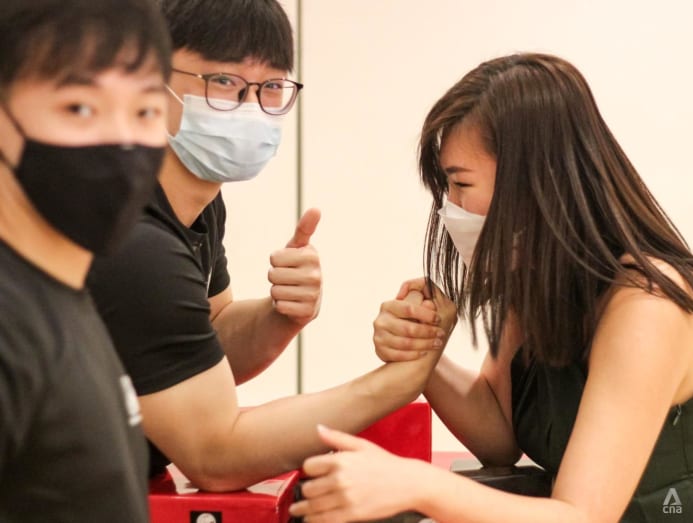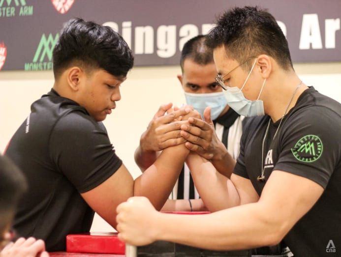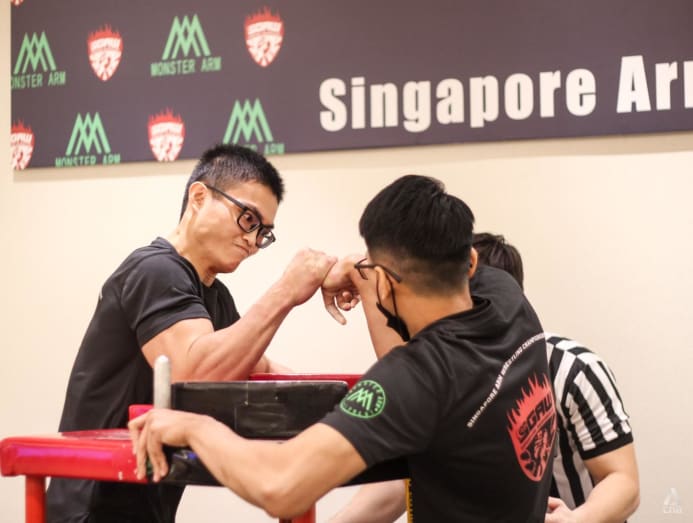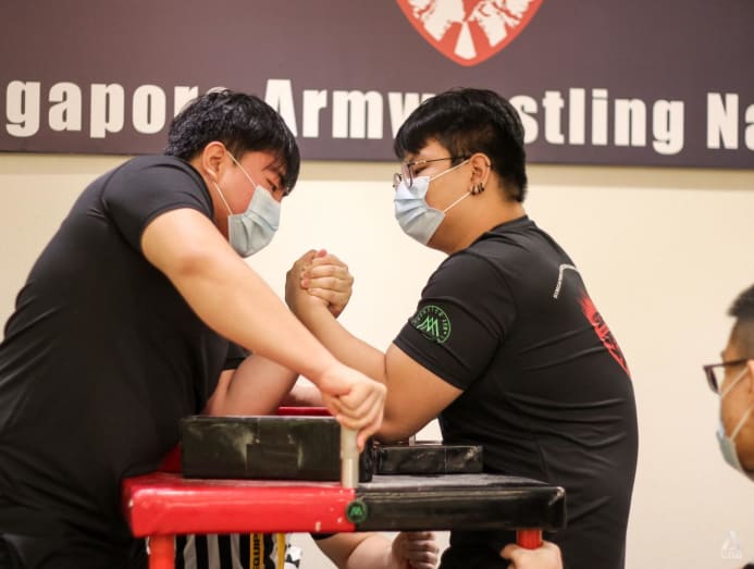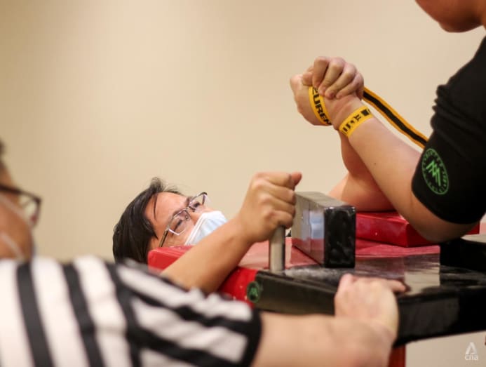 When CNA first covered Singapore’s arm wrestlers, there were several women competing among the men. However, they have since quit the sport or moved overseas, Lau said.