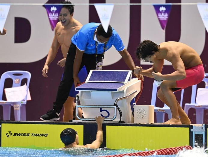 The men’s 4x100m medley relay team of Teong Tzen Wei, Jonathan Tan, Nicholas Mahabir and Quah Zheng Wen also set a new Games and national record of 3:37.45. The quartet took gold ahead of Thailand and Indonesia.