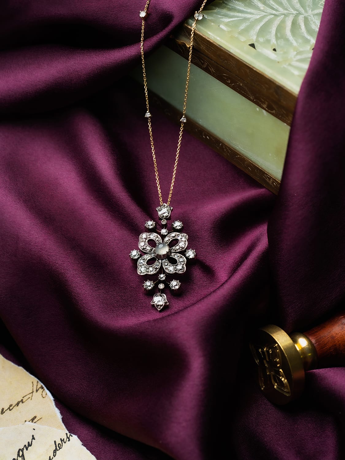 There’s also the Victorian brooch from the 1880s with a floral motif reminiscent of Choo Yilin’s logo. Crafted from oxidised sterling silver and gold, the brooch breathes new life as a ring-cum-pendant that glitters with its original mine-cut diamonds, along with additional custom-cut jade and brilliant-cut diamonds to enhance its allure.