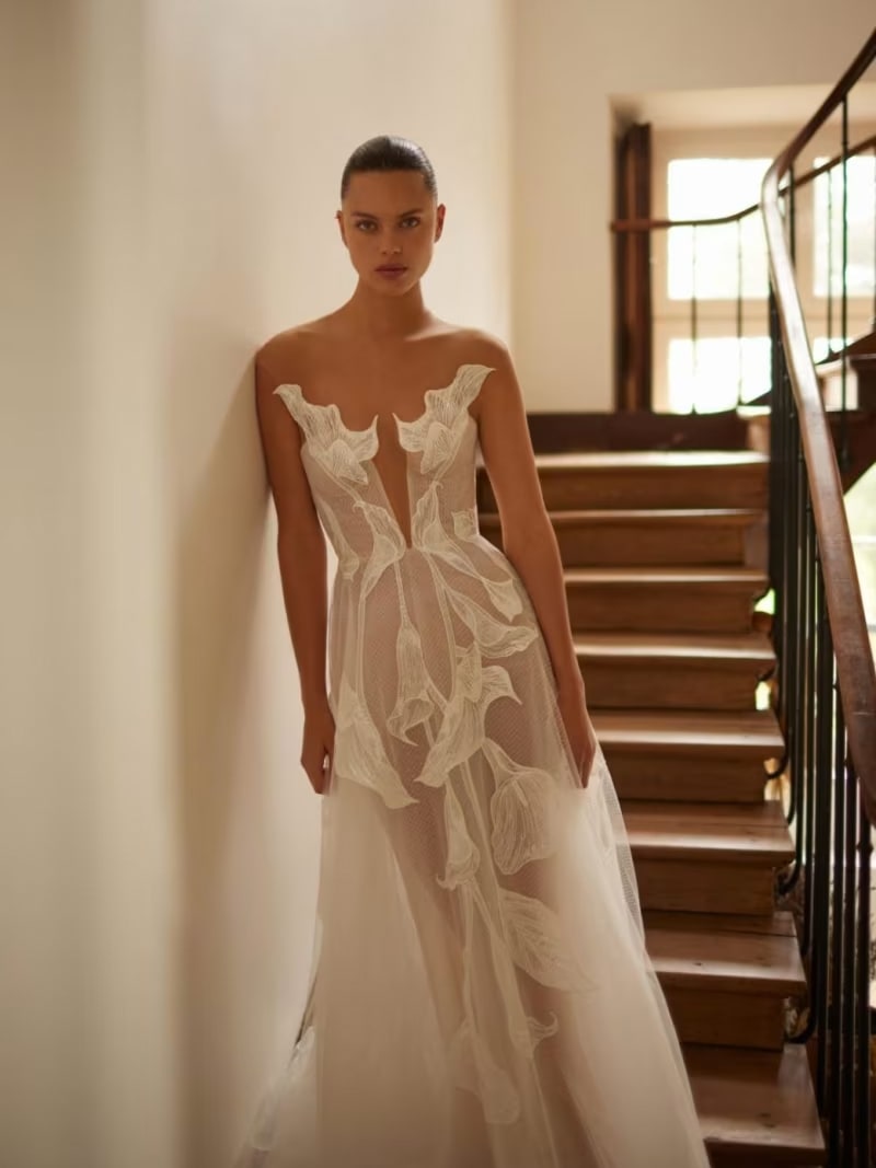 “Keep an open mind as the dream dress or trending style you envision may not be the one that ultimately best suits you. Understanding your natural body shape and determining the best fit and silhouette for you – whether it is a ball gown, or an A-line, column, or mermaid style, is extremely important as well. Pick a silhouette that complements and highlights your best features.”