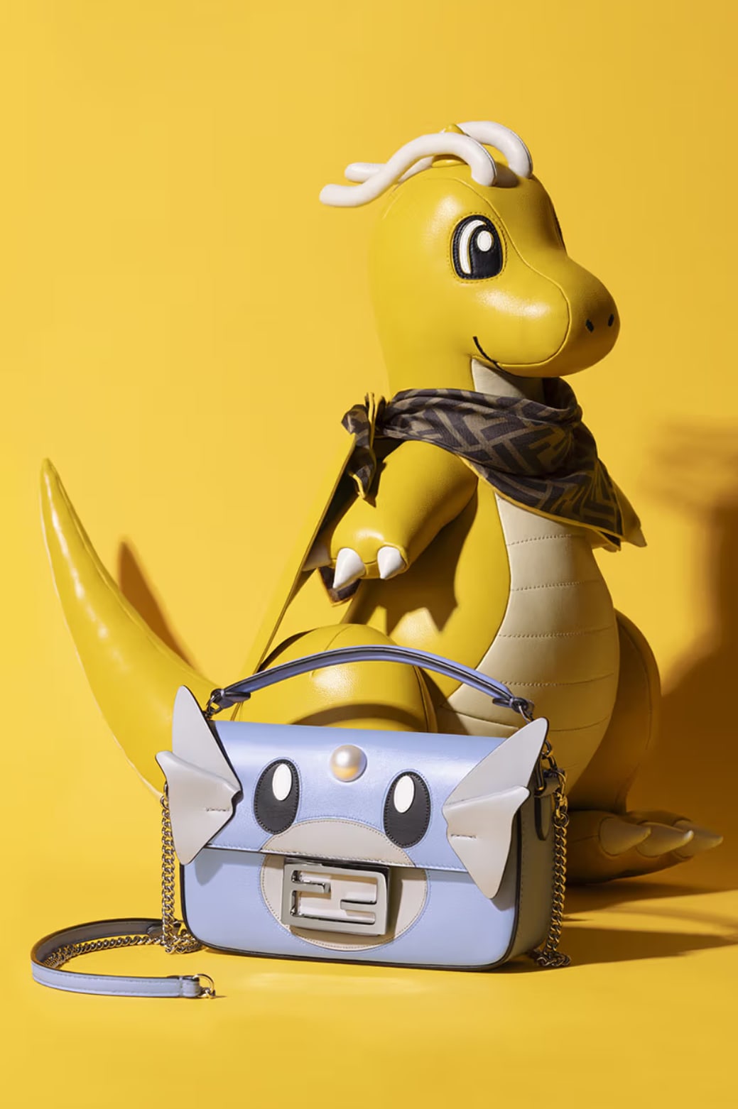 The collection comprises bags and accessories sporting various Dragon-type Pokemon including Dratini and Dragonite. (Photos: Fendi)