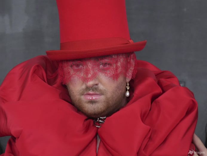 Sam Smith was in fire engine red, with Kim Petras and drag queens Violet Chachki and Gottmik in the same colour. Smith wore a top hat with a veil. They, too, wore matching gloves, a trend of the night.