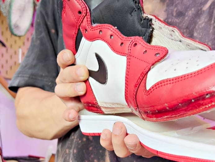 For instance, he has restored a pair of rare 28-year-old Air Jordan 1 Chicago sneakers dating back to 1994 by changing the soles and reconditioning the leather so that they look almost as good as new. Fun fact: These coveted models can sell for thousands on the secondary market.