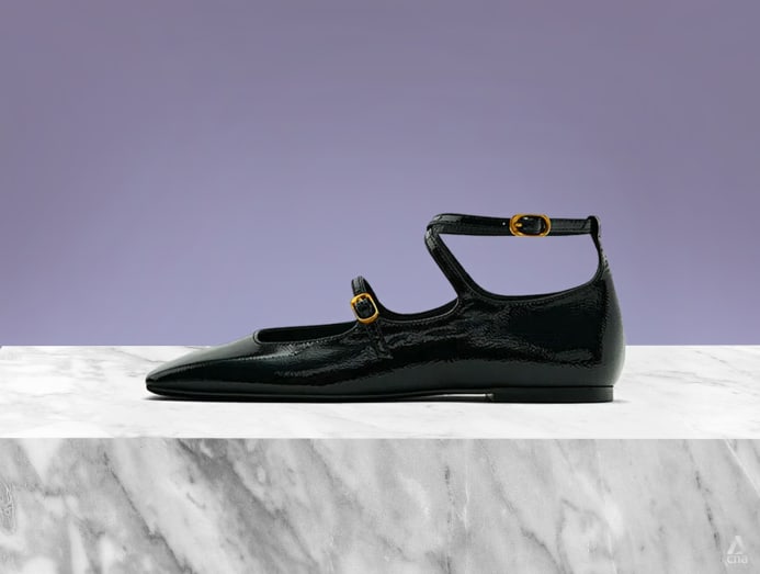 Massimo Dutti flat patent-finish Mary Jane shoes, S$199