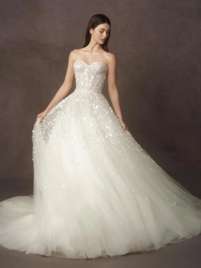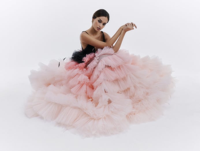 The brand’s strong suit is evidently in the silhouette of its gowns. “They have very sleek and flattering lines. When it comes to a ballgown – like one that has a long train, it’s very ‘picturesque’, and if you take photos of it from afar, you see that grand, sculptural silhouette and outline. That’s one of our signatures, and why many of our clients, celebrity or not, come to us – they’re looking for that really exaggerated and bold silhouette,” added Chang.