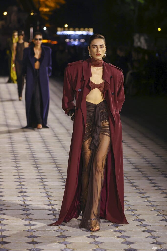 The house founder fastidiously turned the "capuche" (French for hood) into one of his most iconic styles – originally inspired by the tubular sheath donned by dancer Martha Graham for her 1930 choreography Lamentation. So Saint Laurent would likely have looked fondly upon the offering by designer Anthony Vaccarello, who took this hood style and ran – or strutted – with it.