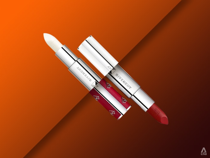 GIVENCHY LE ROUGE UNIVERSAL HYDRATING LIP BALM, S$55 AND LE ROUGE DEEP VELVET MATTE LIPSTICK, S$55