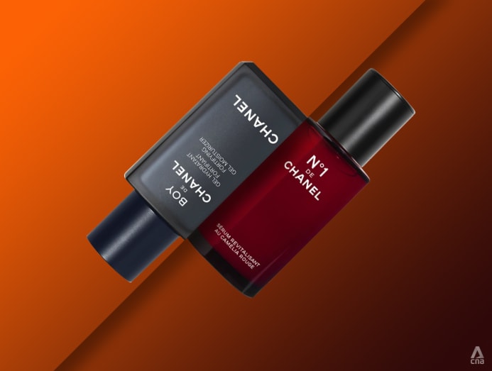 BOY DE CHANEL FORTIFYING GEL MOISTURIZER, S$144 FOR 50ML AND CHANEL BEAUTY N°1 DE CHANEL REVITALIZING SERUM, S$233 FOR 50ML