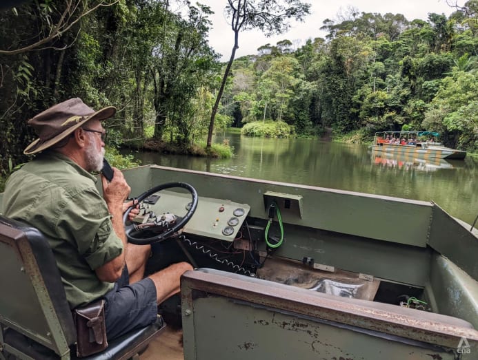 From Kuranda village, we hopped on a bus to Rainforestation, an eclectic nature park where one hops into an amphibious Army Duck, a military six-wheel drive dating back to World War II.