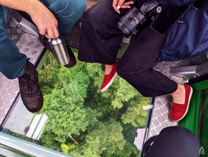 Once Joyee and I were safely hooked onto a metal frame in the centre, we were off. An environmental supervisor at the company, Luke enthusiastically dished out trivia while showing us how to spot plants one could also find in Singapore, such as the rattan palm.
