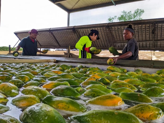 We were given an exclusive tour of the picking and sorting area for locally grown papaya. Workers first get the papayas to bathe in a solution before they are funnelled onto a conveyor belt which feeds into a section where workers sort and pack the fruits, ready for distribution.