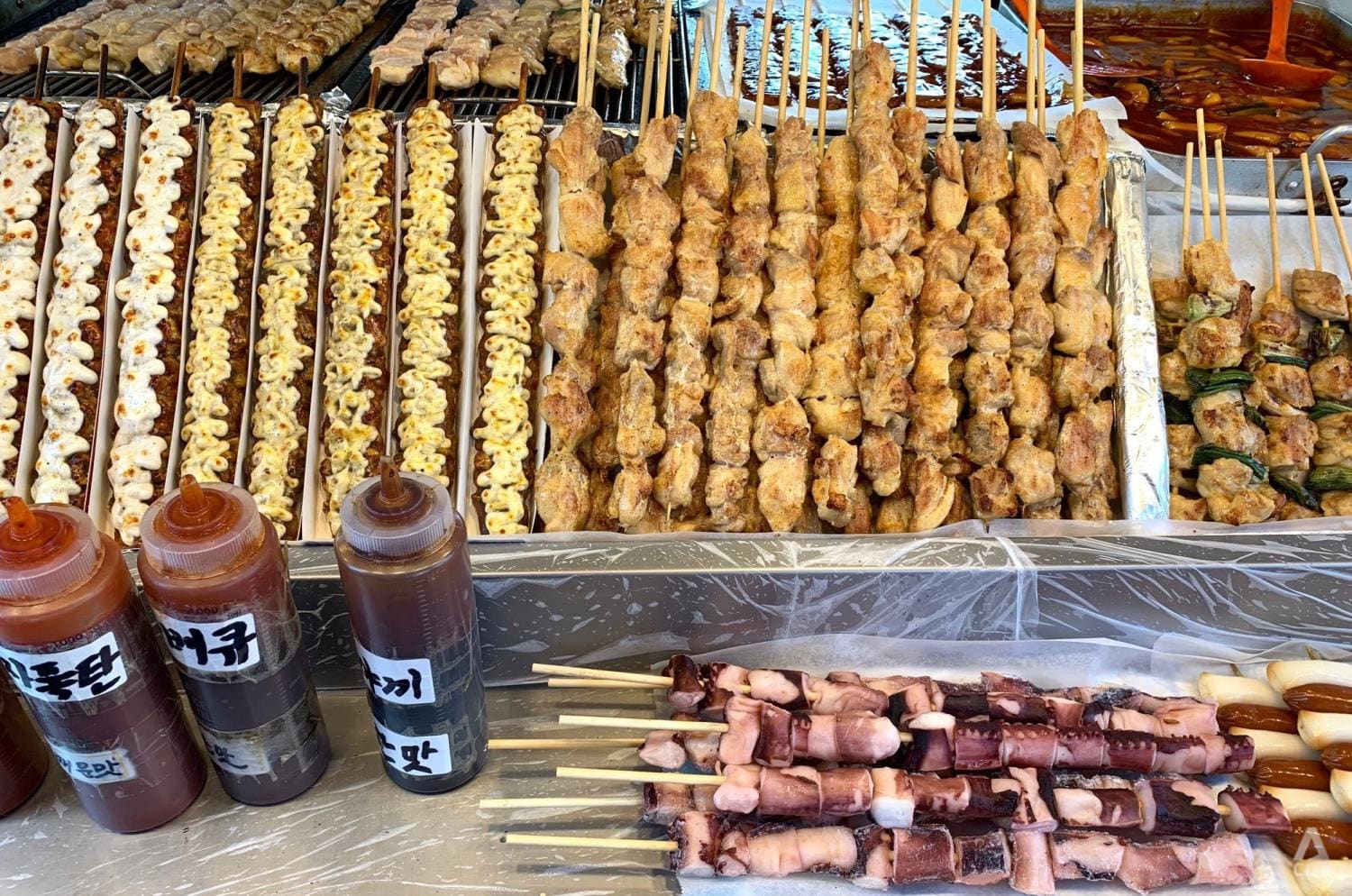 An outing to an amusement park isn’t complete without street food. Sure, you could find conventional corn dogs and corn cobs on sticks here. But if you want to sample local flavours, look for the food stop at the park’s entrance. It offered just about every kind of meat, offal, sausage and squid on sticks (from 3,000 won or S$3.40 per stick) – and even silkworm pupae simmering in stock.