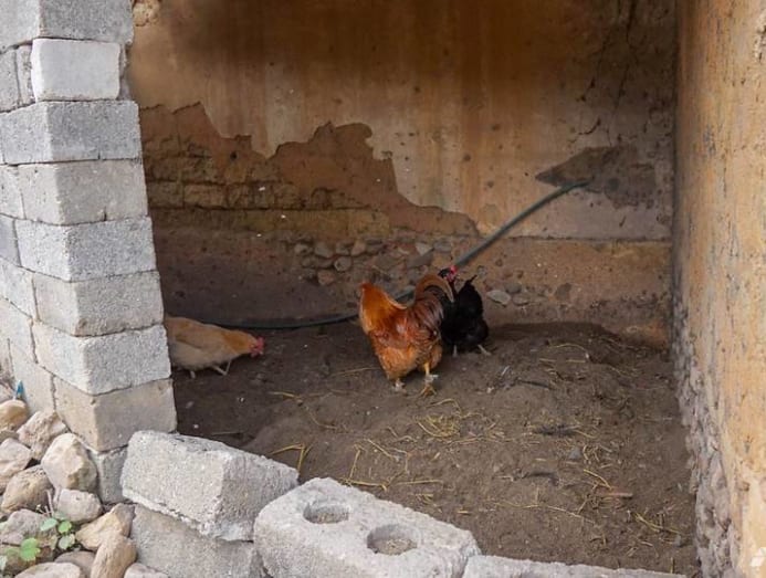 Chickens living in a concrete coop in Red Stone Village. (Photo: Hon Jing Yi)