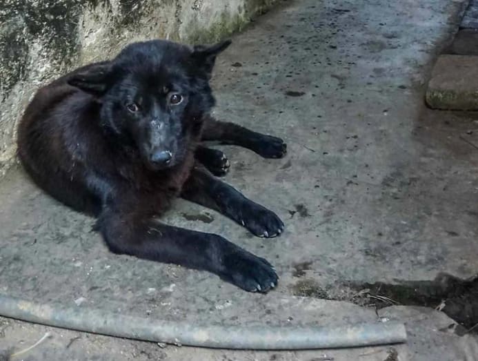 A dog takes a break as a woman does her laundry in Red Stone Village. (Photo: Hon Jing Yi)