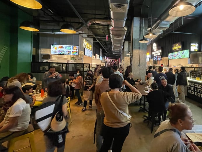 The crowd at Urban Hawker, which comprises 11 Singaporean food vendors and six local New York outlets, located near Times Square. (Photo: Nicolette Wong)