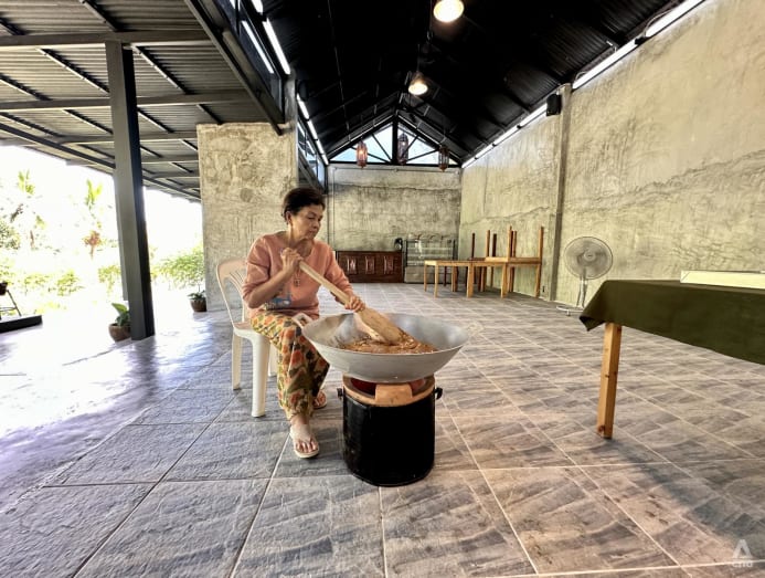 These days, he also makes products like extra virgin coconut oil for sale, and hosts coconut cooking classes. He and his family gave a demonstration on the making of kalamae, a traditional coconut caramel candy that Koh Samui is known for. Made from coconut milk, coconut sugar and glutinous rice flour, the chewy, sticky, pyramid-shaped sweet bears a family resemblance to the kalamay in the Philippines and the dodol in many Southeast Asian countries. Traditionally wrapped in banana leaf and shaped into a triangle, the sweet treat was enjoyed at new year and wedding celebrations. Today, you typically find it wrapped in plastic for sale – and as a dutiful tourist, I had to buy some – but it’s still a tasty snack.
