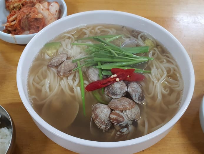 Kalguksu (knife-cut noodle soup) wasn’t on my list of food to try in Seoul, maybe because it seemed too much like ban mian. Yet, as we were looking for a lunch spot after visiting Gyeongbokgung that won’t take us too far away from the National Museum of Modern and Contemporary Art (MMCA) Seoul where we were planning to head to after lunch, Hwangsaengga Kalguksu was the obvious choice.