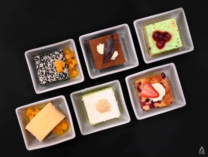 A display of nine new dishes from the Book The Cook menu that Premium Economy class passengers may pre-order for SIA’s flights at the unveiling of the airline’s revamped Premium Economy in-flight experience on Mar 14, 2024. (Photo: CNA/Eugene Goh)
