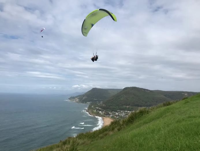 For the tandem flights (A$229 on weekdays, A$249 on weekends) you are harnessed and sat in front of your instructor. This allows you to have a bird’s eye view while controlling your canopy under the supervision of an experienced paraglider behind. The flight starts and ends in Stanwell Park, a beach and suburb north of Wollongong, south of Sydney. You’ll descend and land on the soft beaches of Stanwell Park Beach.