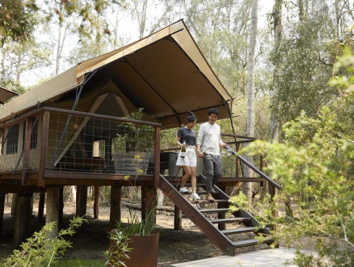 It’s an experience that takes you back to a simpler life with no air-conditioning, heating, refrigeration or charging points. But lest you think that you’re required to tinkle in the wild, this is still glamping and you’ll find private open-air ensuite and baths with a view. And if you’re hungry, head up to Paperbark’s treetop dining room The Gunyah (where, hurrah, there's power and Wi-Fi).