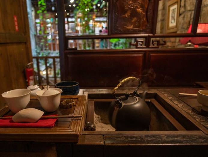 Immediately after I arrived, I found myself lost in its dizzying alleyways, filled with tea shops, souvenir shops and stalls selling popular Taiwanese street food items, like peanut ice cream rolls, taro balls and my favourite – freshly grilled Kurobuta sausages. Feeling slightly overwhelmed by the heat and hordes of tourists, I ducked into a tea house that I found tucked inconspicuously away on a quieter street, steps away from the more famous, but also more crowded, A Mei Tea House.