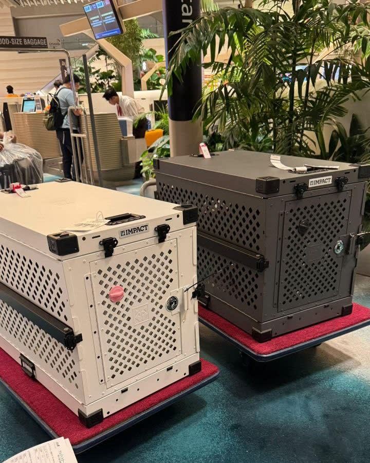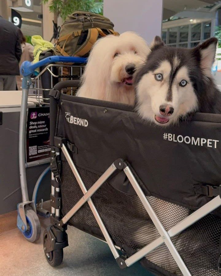 Larger dogs have to travel in cargo, as Vivienne Loh’s Husky and Old English sheepdog, Klover and Belle, did when they visited Japan in April 2025.