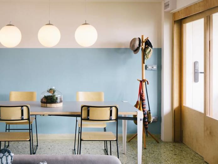 The creative director wanted a space with character, and thus sought to preserve the circa-1970s feel of the flat. Much of it was still in its original condition, from the speckled terrazzo floor in the dining area, to the retro-looking half-height tiled walls of the kitchen, and the cement flooring in the living area.
