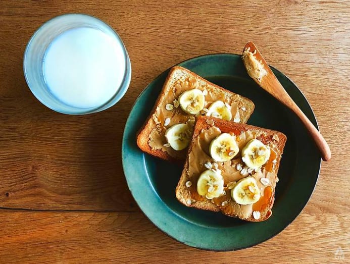 “This may be in the form of two slices of wholegrain bread with peanut butter and slices of banana, washed down with a cup of calcium-fortified soy milk.