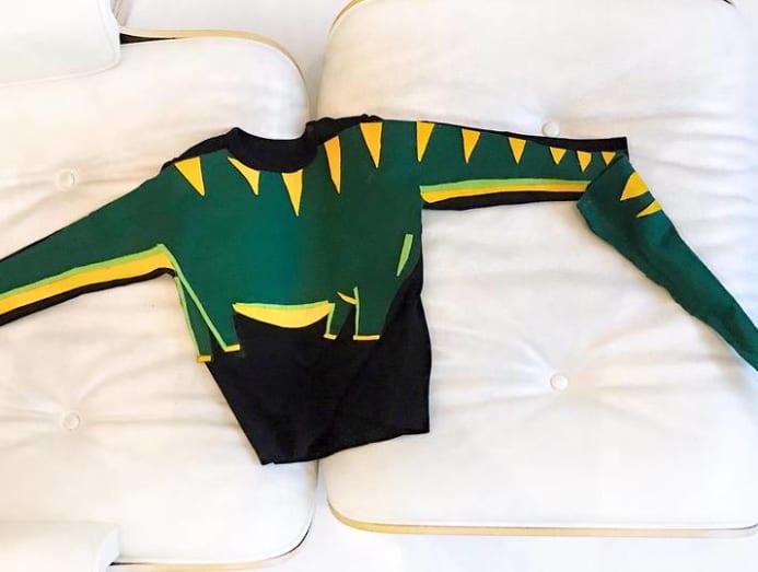 The idea worked well on paper and she bought it. But making it was a messy, slightly exasperating exercise. Gluing together the diplodocus’ body was relatively easy – that got affixed to a store-bought long-sleeve shirt.