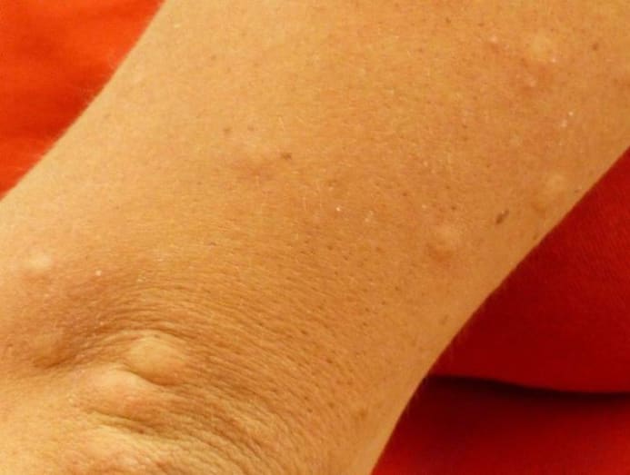 “They can be the size of a mosquito bite or smaller, or even cover whole limbs as they join and spread.”