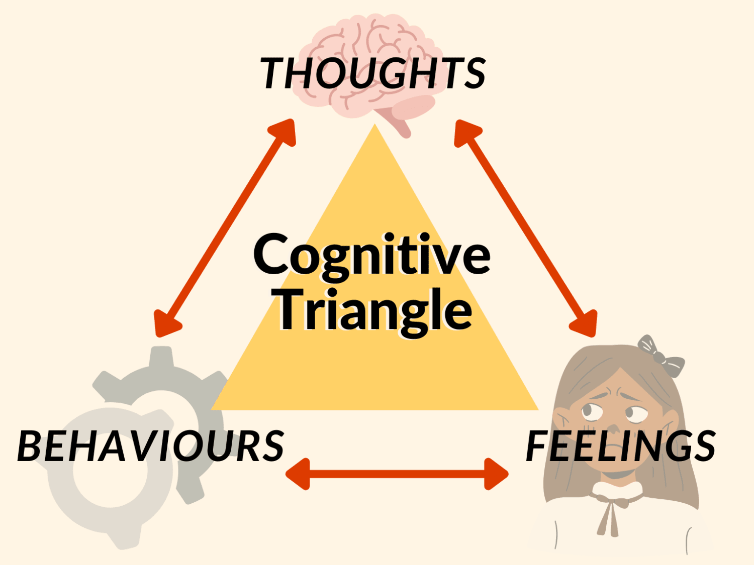 According to her, people function on a cognitive triangle where thoughts, feelings and behaviours interconnectedly affect one another. When thoughts of someone judging your skin float in, you may then develop feelings of anxiety and shame.