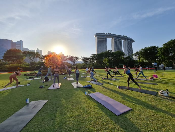 “Practising yoga in front of a beautiful natural view, or even an awe-inspiring cityscape such as the view of the CBD from the Marina Promenade, helps us to tap into our sense of ease, our sense of purpose, feelings of gratitude and even creativity,” she said.