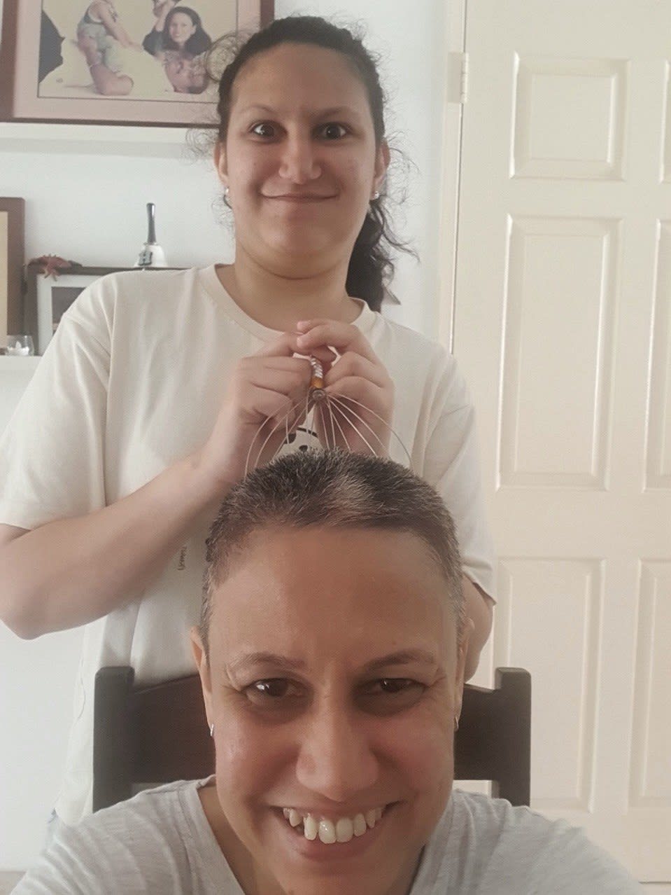 When she got a crew cut to prepare for chemotherapy, her son Harish shaved his head in solidarity.