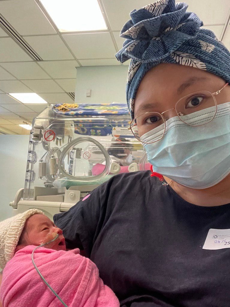 At 32 weeks of pregnancy, on her doctor’s advice, she had an induced labour to deliver her baby early and begin cancer treatment sooner. Her premature baby spent more than a week in the Neonatal Intensive Care Unit (NICU) and another three weeks in a special care nursery.