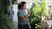 Cedillo takes charge of watering all the plots, which takes about an hour, while the others help with other gardening chores, such as pulling out weeds and pruning the plants.