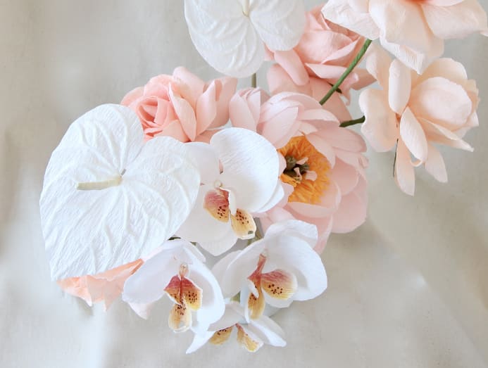 A few years later, when I was back in Singapore, I chanced upon crepe paper flowers on Instagram. That was my first time learning about Italian crepe paper and after shipping in the paper rolls from Italy, I was hooked! Italian crepe paper is strong, durable and extremely malleable. It almost feels like I’m working with clay. I felt so comfortable and creative with the medium. It wasn’t long before crepe paper flowers became the main expression of my artistic voice.