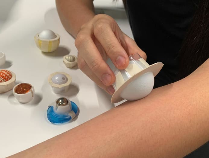 Koh tested the texture on real eczema patients to collect data and ensure the device would work. She also collaborated with a skin researcher, rolling her device over carbon paper with varying rollerball itch designs.