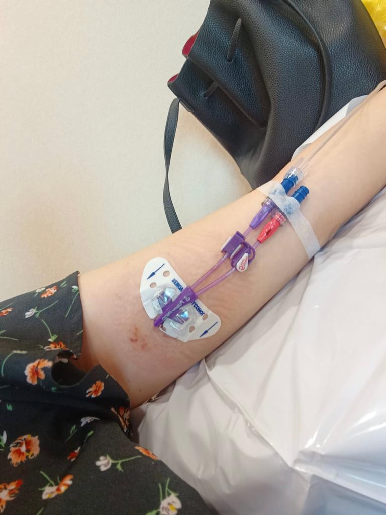 Her hands also became sore from finding new spots to insert the intravenous cannula (IV) plug and her doctor eventually decided to insert a 35cm flexible tube into one of the large veins in her upper arm to facilitate the daily drips.