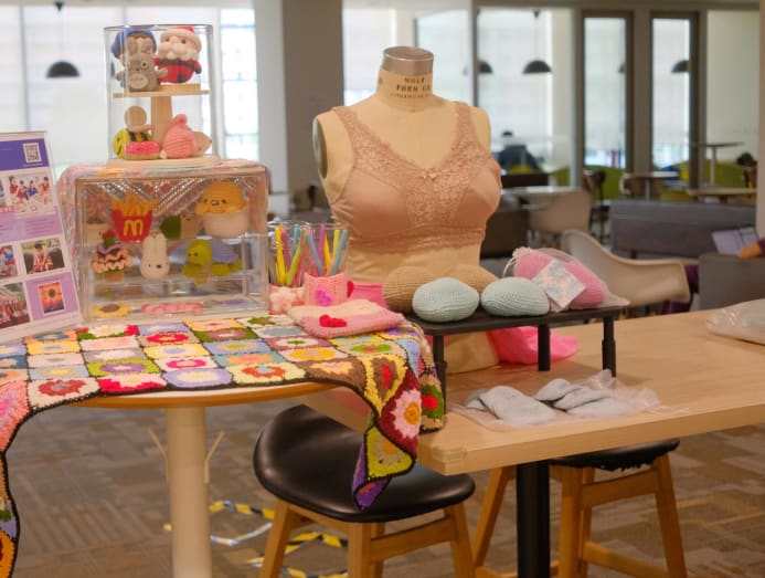 For senior optometrist Quah Hui Min, crocheting knockers and other items like hats and pill plushies blends her creative interests with a meaningful cause.