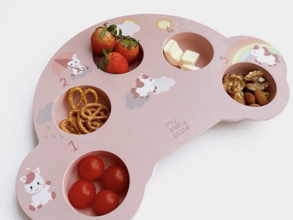 Rachel Raeburn created My Story Plate for her daughter Oia Tan, who was easily distracted during meals and would not finish her food. The pastel-coloured plates come with small, numbered compartments that make eating less overwhelming for children.