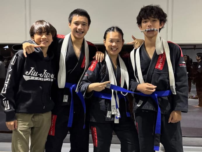 Yong and her boys attend BJJ classes together at Evolve MMA, a local chain of martial arts gyms. Her favourite part of the class is getting to spar with them.