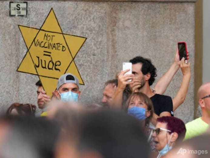 Some protesters in Italy and France have worn yellow Stars of David, like those the Nazis required Jews to wear during World War II.